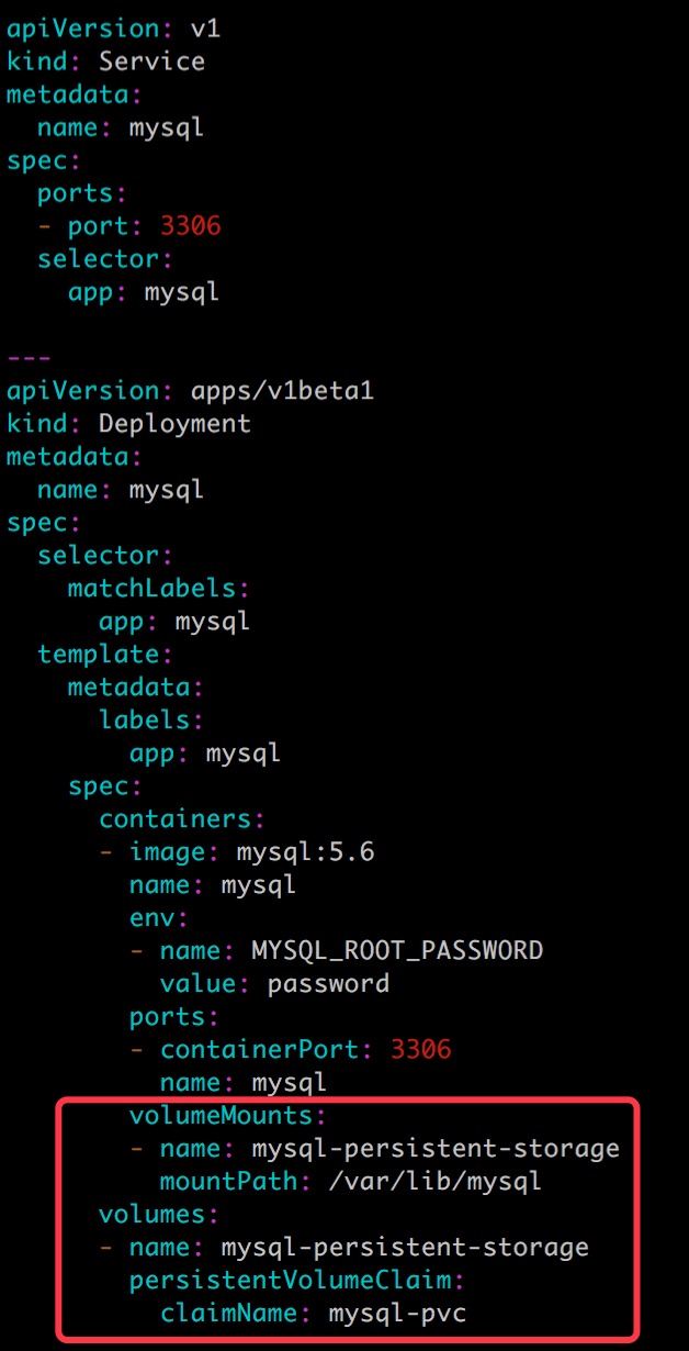 接下来部署 MySQL,配置文件如下: