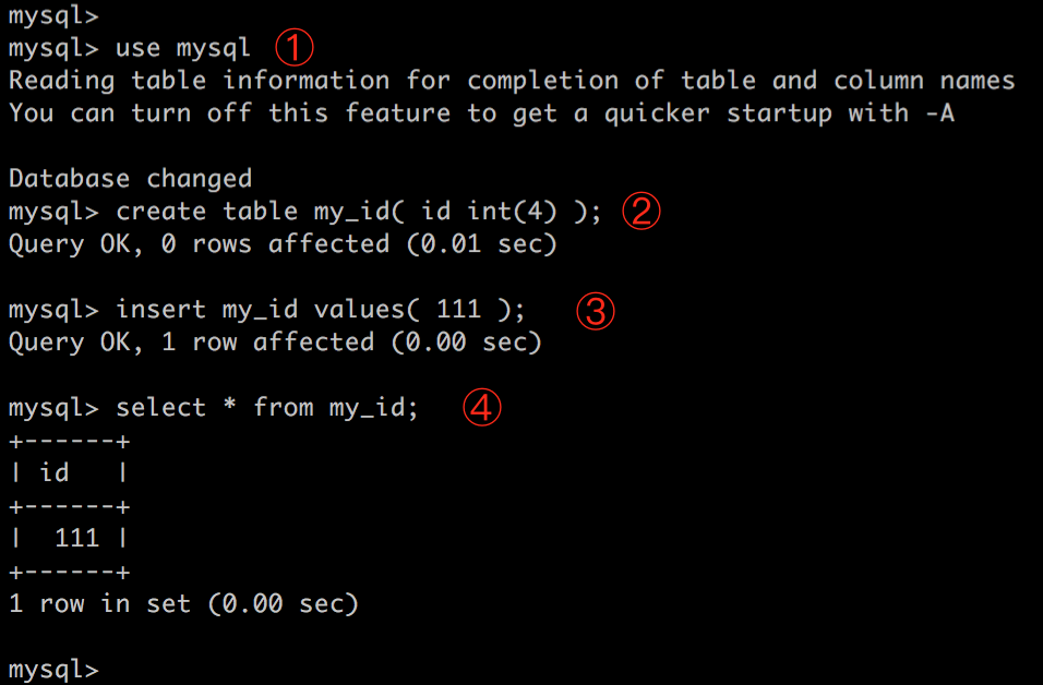 ② 创建数据库表 my_id。