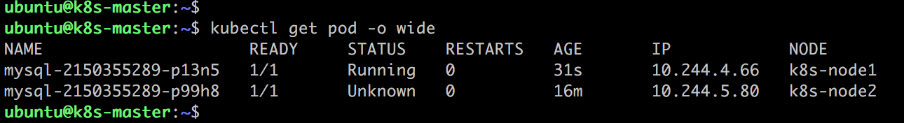 一段时间后,Kubernetes 将 MySQL 迁移到 k8s-node1 。