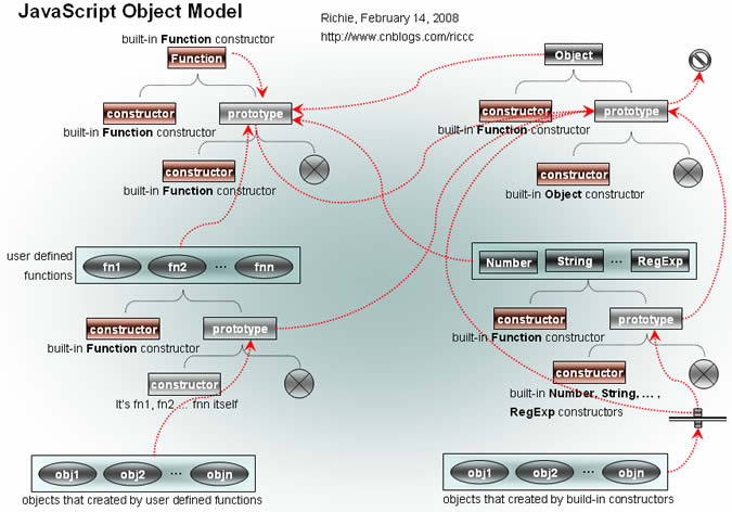 具体实现上,上图中横向之间可能也存在关联,例如对于build-in data structure和constructor,Function、 Date、 Array、 RegExp等都可以继承Object的结构而实现,但这是具体实现相关的事情了。