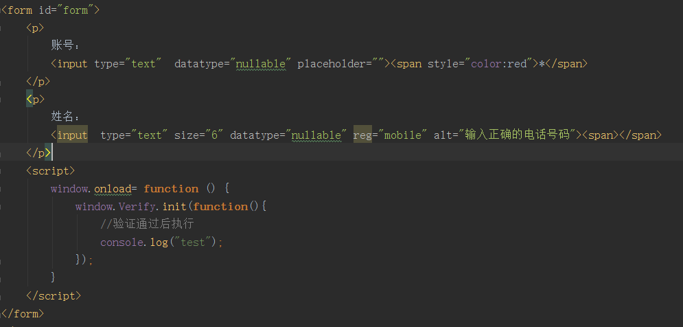 嗯,简单的html布局已搭好了,这里是我根据datatype这个属性的值来判断用那个方法验证
