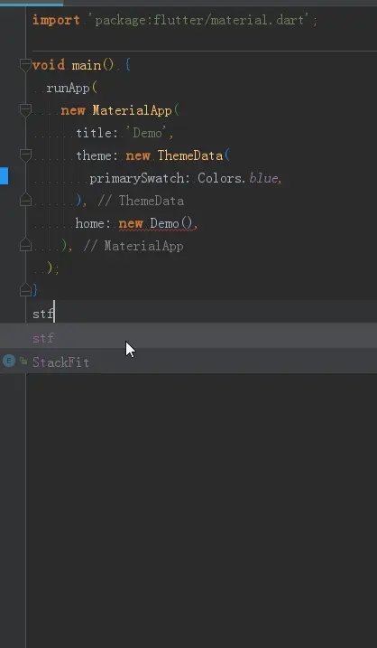 | stf | 创建完整的StatefulWidget,包含生命周期相关方法。 |