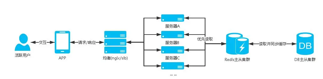 场景中的这些业务基本是用户进入APP后会操作到的,除了活动日(618,双11,等),这些业务的用户量都不会高聚集,同时这些业务相关的表都是大数据表,业务多是查询操作,所以我们需要减少用户直接命中DB的查询;优先查询缓存,如果缓存不存在,再进行DB查询,将查询结果缓存起来。
