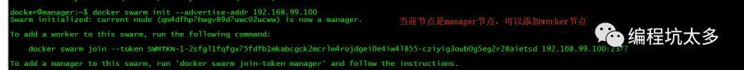 说明:init命令初始化后生成两个token,分别为manager token和worker token