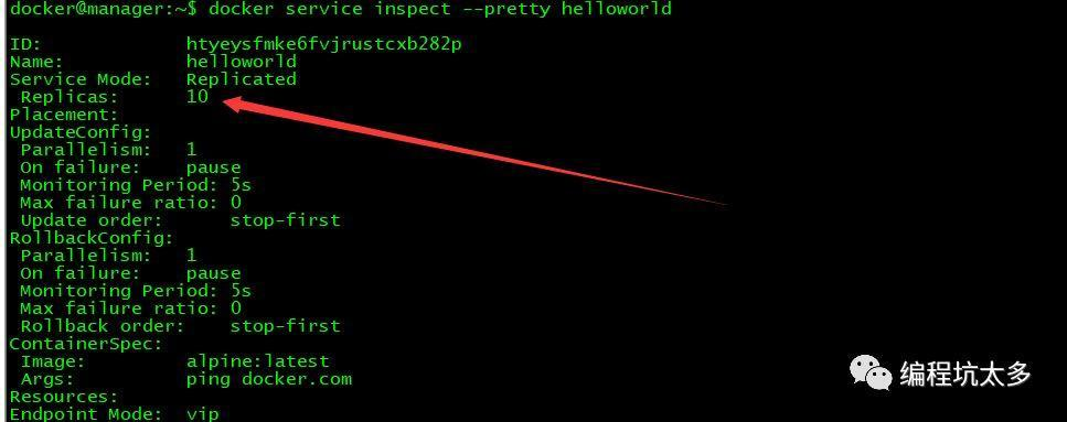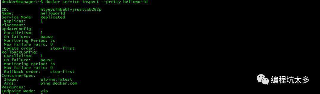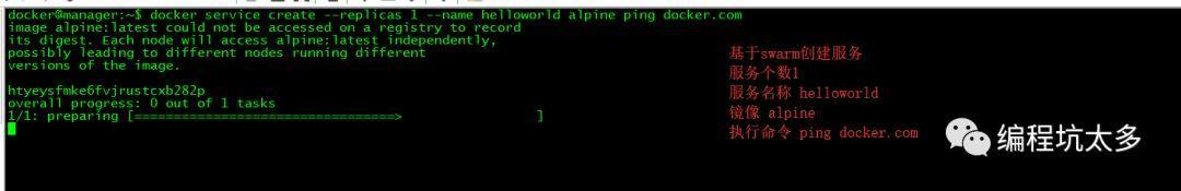 docker service create --replicas 1 --name helloworld alpine pingdocker.com