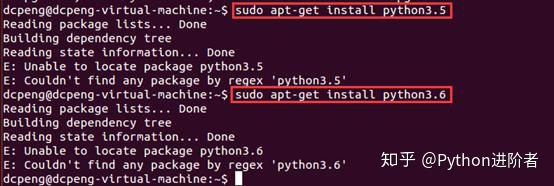 4、同理,在Ubuntu14.04中,其并不支持python3.5和python3.6,所以在安装的时候找不到安装包,如下图所示。