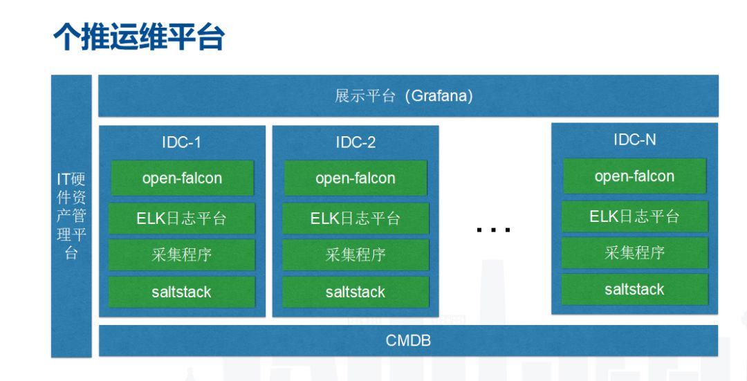 第一个是IT硬件资源平台,主要维护主机维度的物理信息。比如说主机在哪个机架上接的哪个交换机,在哪个机房的哪一个楼层等等,这是做机架感知和跨IDC等等的基础。