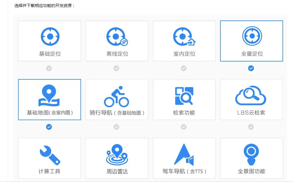这里我们选择【全量定位】与【基础地图】资源。