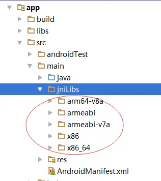 接下来在 app → src → main 中,新建一个 jniLibs 文件夹,然后再把百度下载包中的其它文件夹都拷贝到这个新建的文件夹中: