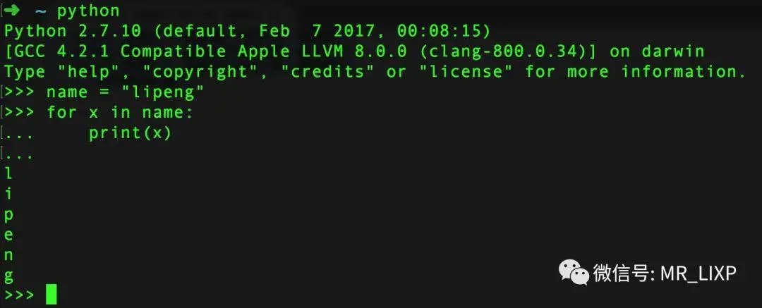 for 临时变量 in 列表或者字符串等: