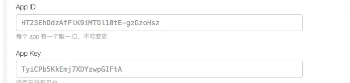 2.在leancloud创建一个同名项目,并记录好appid和appkey