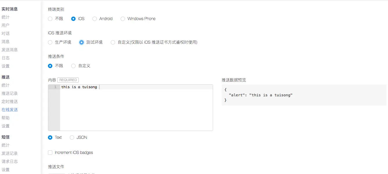 最后重新运行APP并在leanclound发送一条消息,看是否在APP打开状态也能收到通知,到了这里推送就完成了