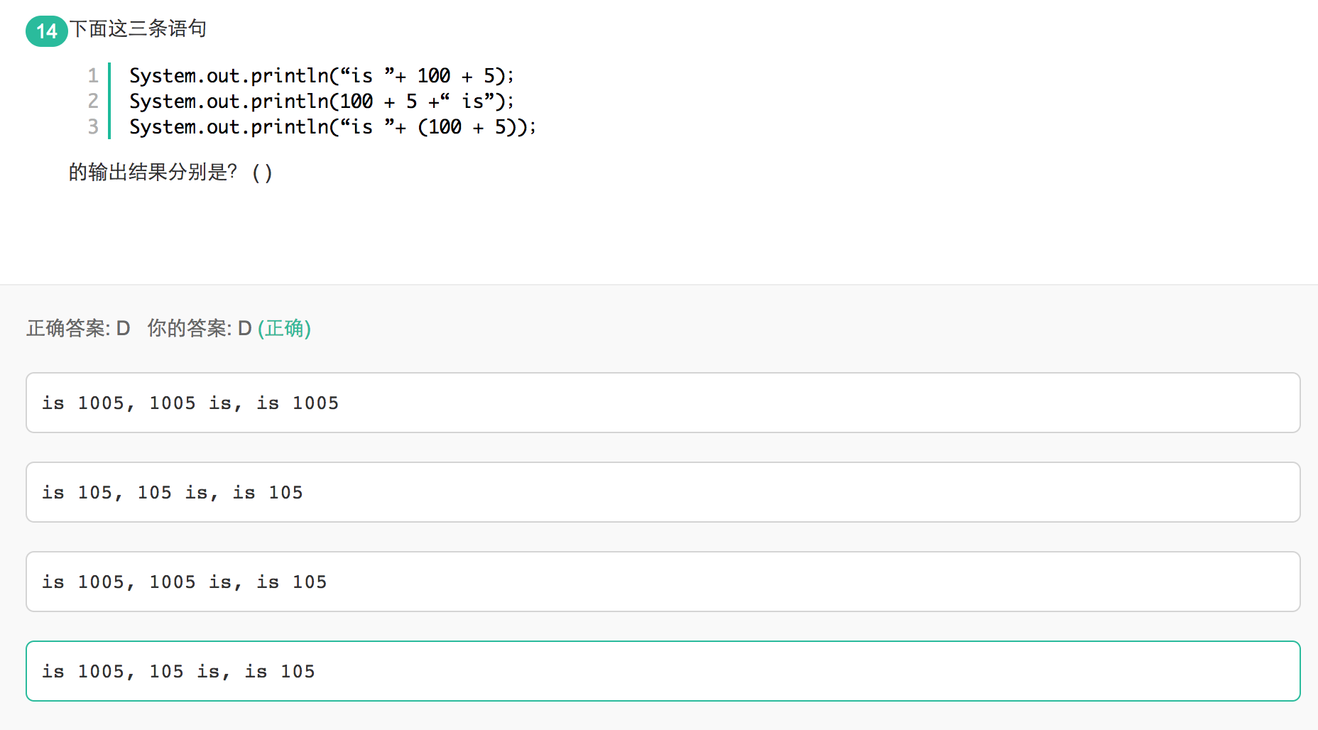 System.out.println()中,如果有 +字符串出现, 那么就会将整个要输出的内容转换为字符串, 按照, 优先级,从左到右的顺序进行