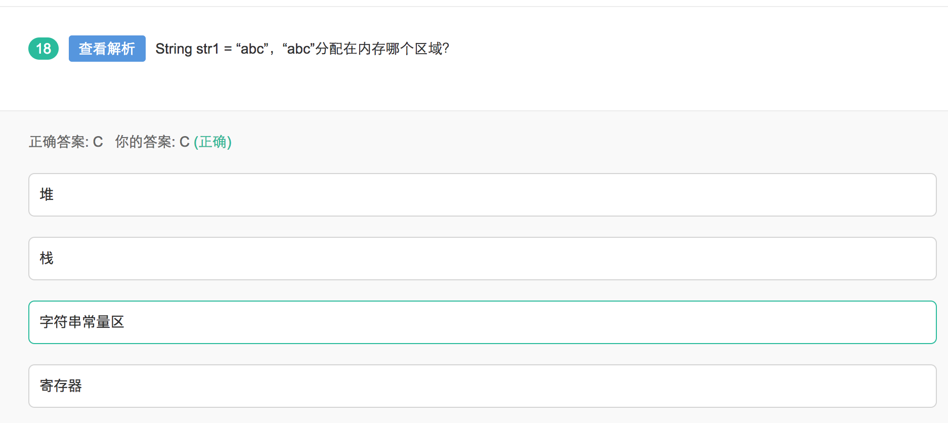 String str1 = "string1" ; 此时,str1在栈中,"string1"在字符串常量池中