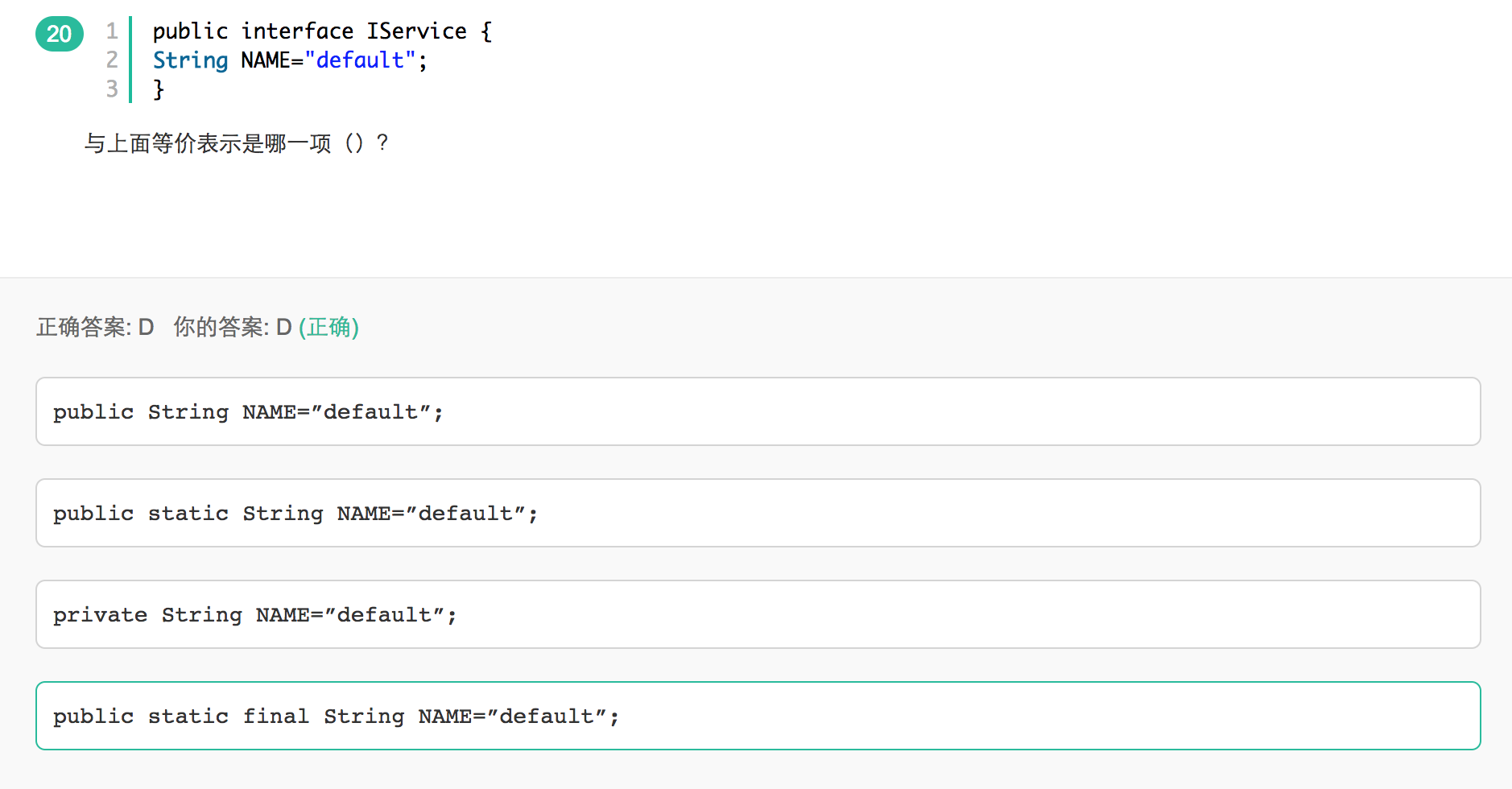接口中的成员变量,默认的修饰符为: public static final