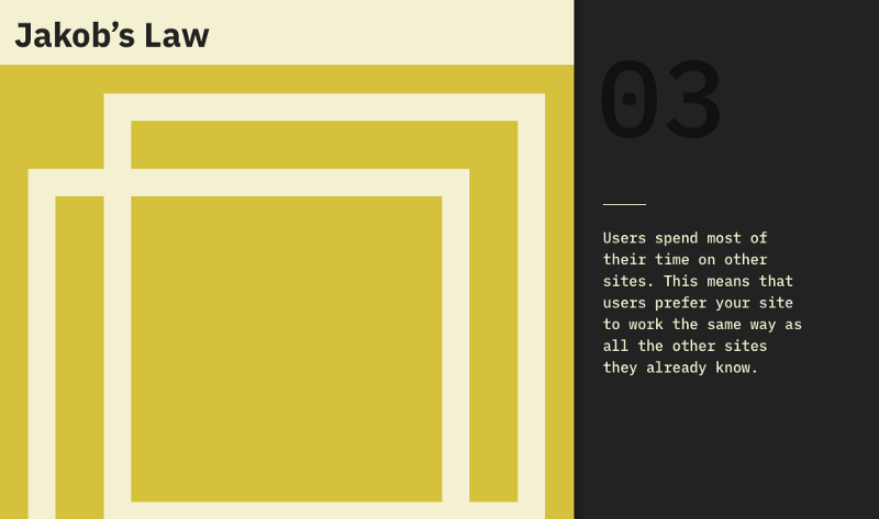 在“Laws of UX”网站中,每个法则都有自己的图形表现,其灵感来自极简主义书籍的经典封面,而不是简单地将它们作为列表收集,目标是帮助人们记住这些规律。