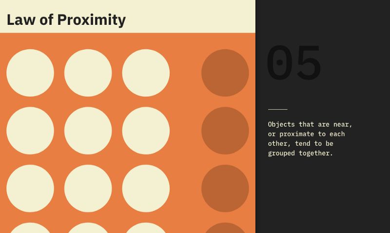 该法则认为,如果您正在处理一组数据,我们理解的所有与同一组相对应的数据应该在一起,如果我们开始谈论不同的数据,它们之间应该有一个空间。我们的头脑将完成剩下的工作把它们区分开。