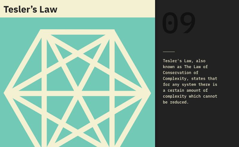 特斯勒法则也称为“复杂性守恒”。它确定了任何系统都存在一定的复杂性,无法最大程度地将其降低。