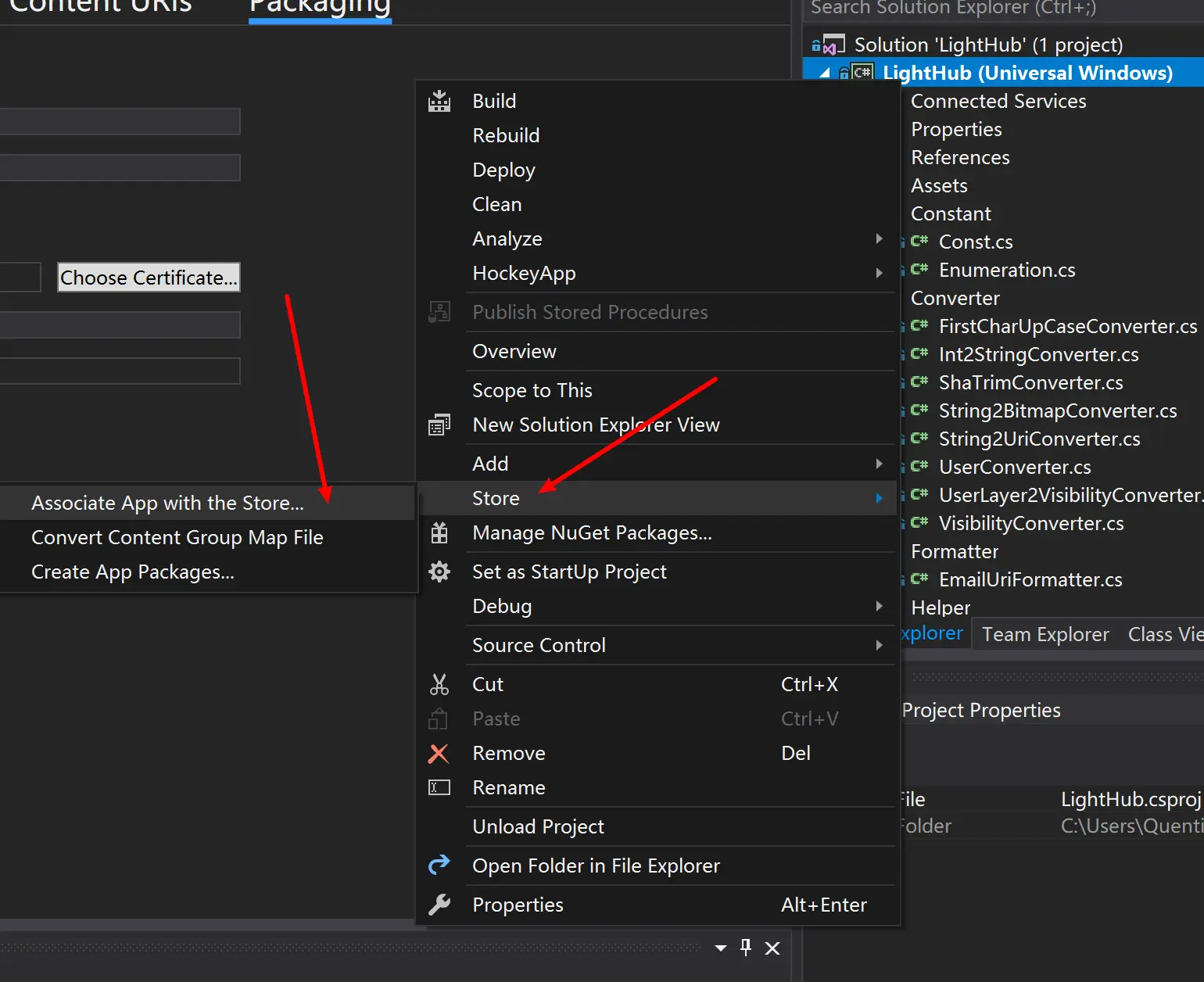 使用 VS 来进行打包 (VS 需要使用对应的开发者账号登陆)