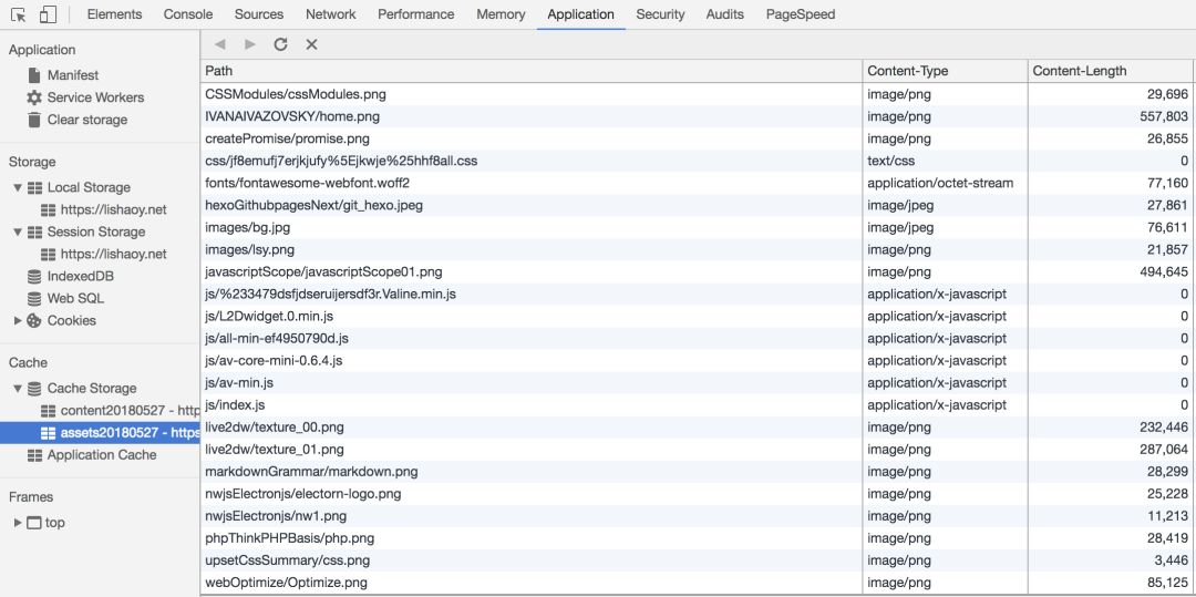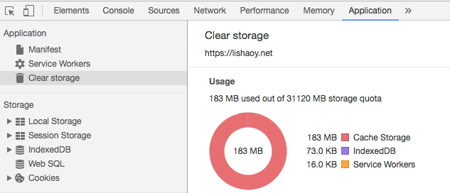 有的同学就问, service worker 这么好用,这个缓存空间到底是多大?其实,在 Chrome可以看到,如图: