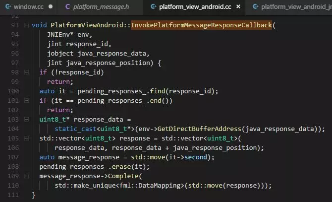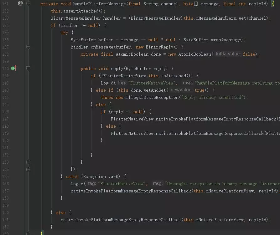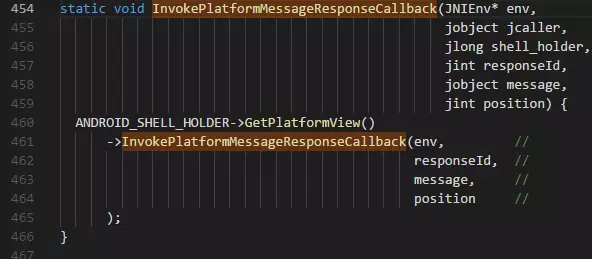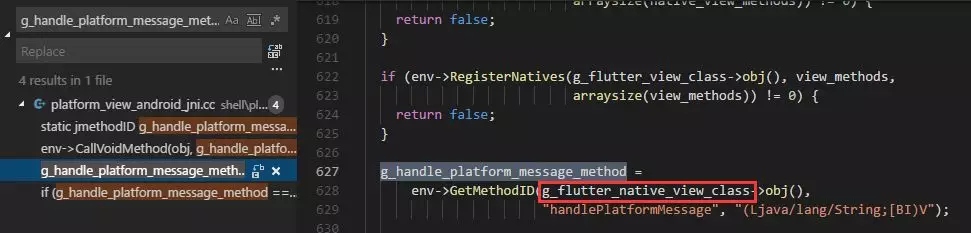 OK,经历了重重关卡,终于找到了jni的方法。那么也就是说,只要找到 g_handle_platform_message_method 所指向的方法,就能走入Android的世界了。(可以提前关注一下 pending_responses_,这个变量在后面会提到)
