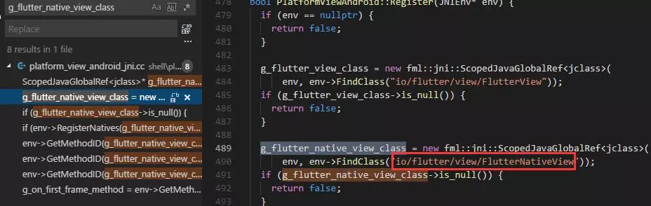 然后再找这个类名,就可以在Flutter的Android工程中找到这个方法了。