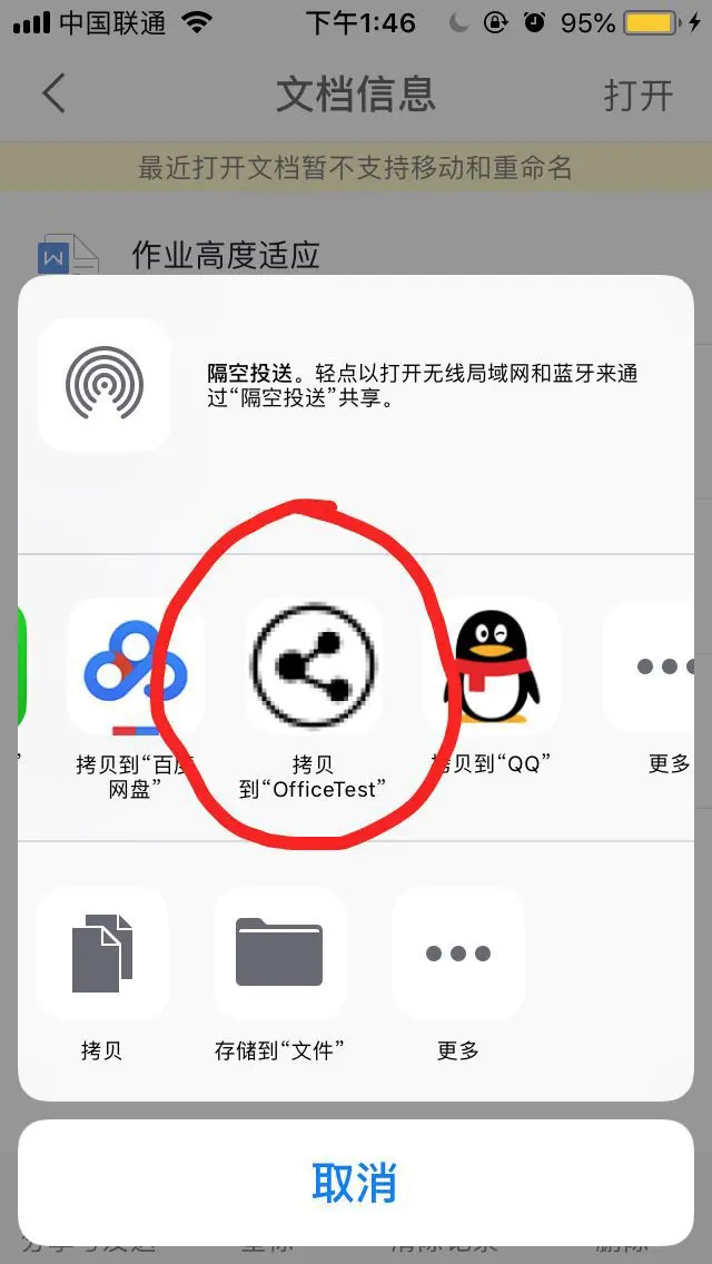 - 方法二(推荐,自带分享功能) 用<QuickLook/QuickLook.h>。该方法使用比上一个稍微复杂,但好处是能点击分享。如果用户觉得辛苦,可以换到WPS浏览。
