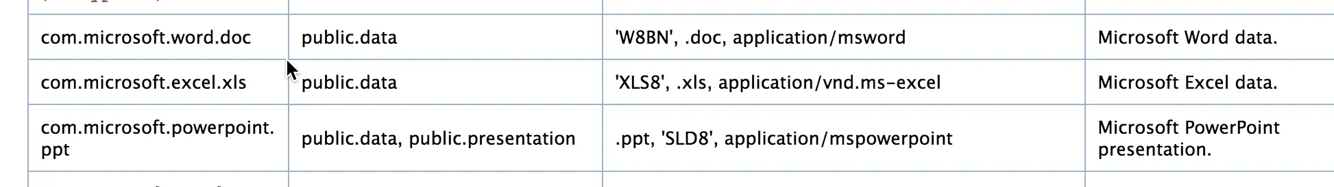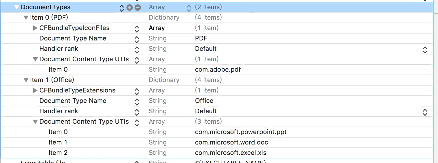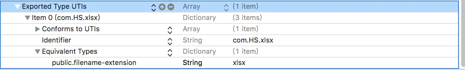 Document Content Type UTIs:文件类型的UTI。格式对应的标识符。
