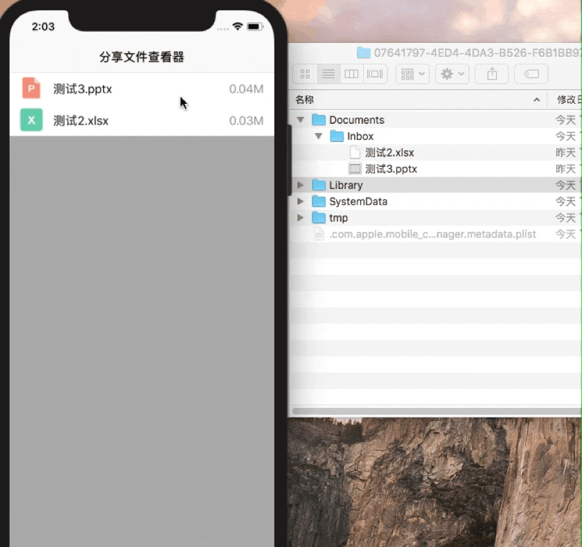 为了方便在模拟器测试,查看沙盒文件状态,弄了个演示预览文件功能,还能分享到别的App的软件。