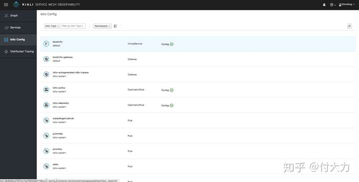 Kiali 为我们提供了查看相关服务与配置提供了统一化的可视化界面,并且能在其中展示他们的关联;同时他还提供了界面让我们可以很方便的验证 istio 配置与错误提示;