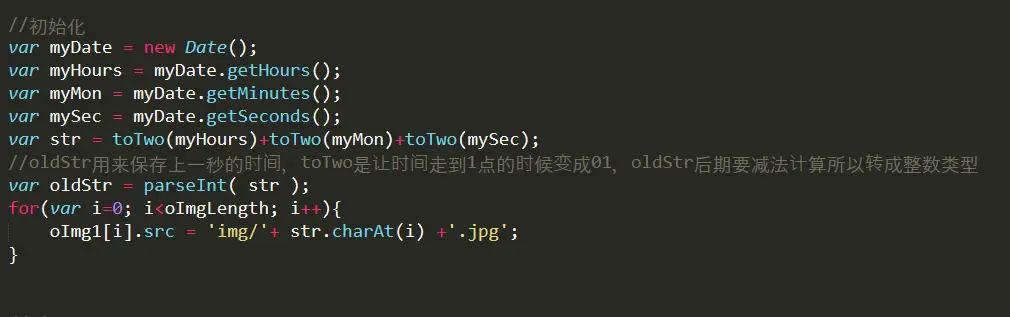 判断部分,实现原理就是,保存两个值,一个上一秒的时间值a和本次的时间值b,把它们逐位减,再把减得的值push进数组,后面就判断,如果数组里的某位值不为0就说明它变了,那就调用相关函数。