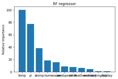 2,从相对重要性图中可以看出,温度对共享单车的使用影响最大,这个可以理解,比如冬天太冷,夏天太热时,骑小黄车的人就显著减少。但图中显示年份(yr)是第二个重要因素,这个估计是因为年份只有2011和2012两年所致,要想得到更加可信的结果,还需要更多年份的数据。