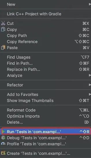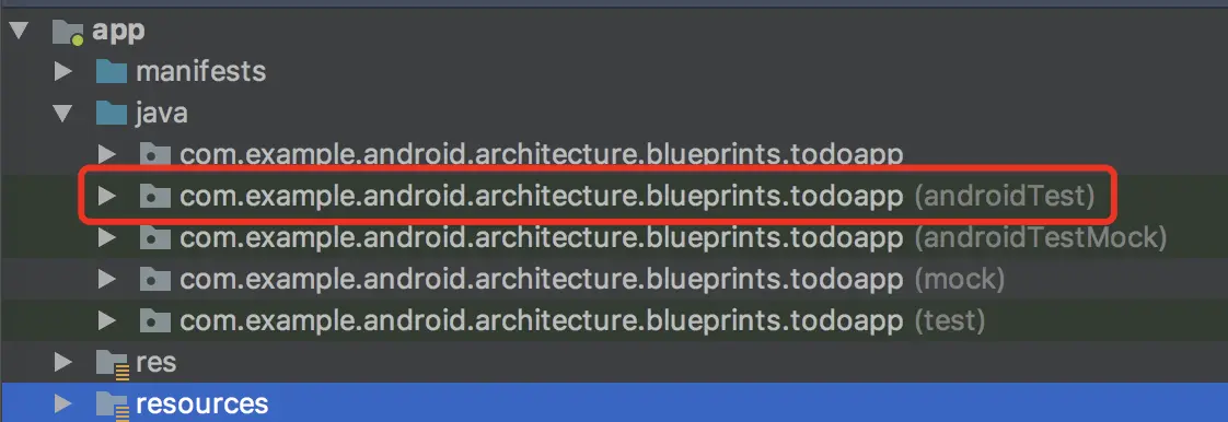 其中androidTest和androidTestMock都是UI测试的代码,我们先右键点击androidTest文件夹,run该文件夹下的所有UI测试case。