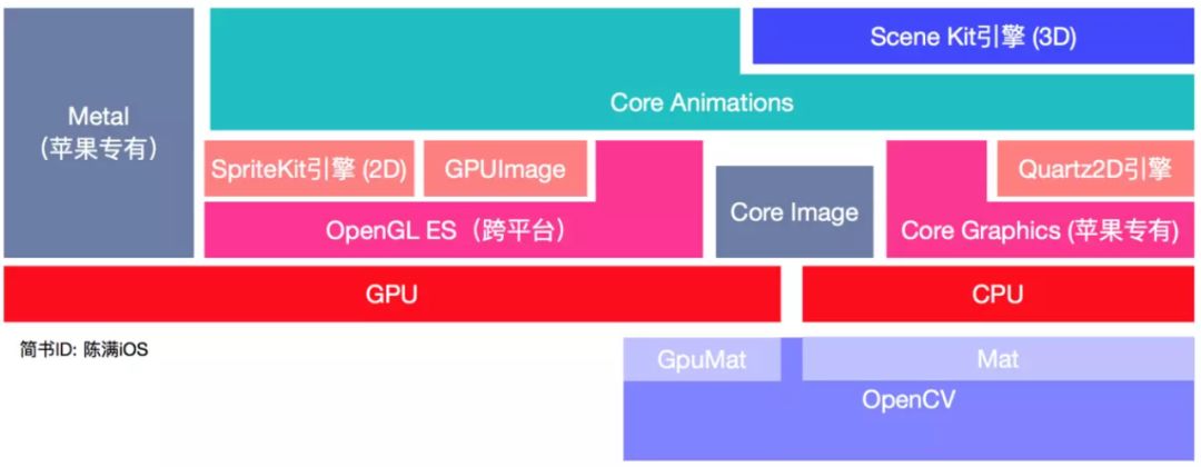 对于刚接触 iOS 图形相关框架的小白,有一些图形框架在字面上和功能上非常容易混淆。这里旨在总结一下各种框架,区分它们的概念和功能,以作日后进一步细分学习的指引。因而,本文并不会针对具体框架作详解,只作区分引导,读者可自行选择方向继续深造,笔者日后也可能抽空产出这一块的文章。为此,笔者总结了一张各种框架关系图,如下所示:
