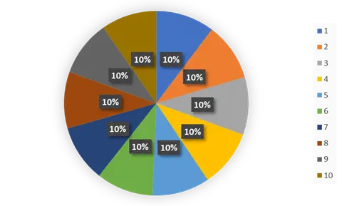 Counter({7: 3084, 6: 3042, 10: 3033, 3: 3020, 8: 3016, 5: 2997, 4: 2986, 2: 2972, 9: 2932, 1: 2918})