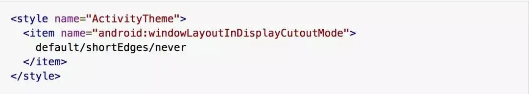 您可以利用全新的窗口布局属性 layoutInDisplayCutoutMode 管理应用在凹口屏幕上的布局显示。在默认情况下,只有当缺口完全包含在状态栏内时,系统才会允许应用延伸至缺口区域,否则窗口不会与缺口重叠。此外,您可以通过更改 layoutInDisplayCutoutMode 参数,让设备始终 (或绝不) 允许应用使用缺口区域。如果您希望利用到整个显示区域,而且不介意缺口位置无法显示应用内容,SHORT_EDGES 模式是个不错的选择,在该模式下,系统始终允许应用窗口延伸至缺口区域。