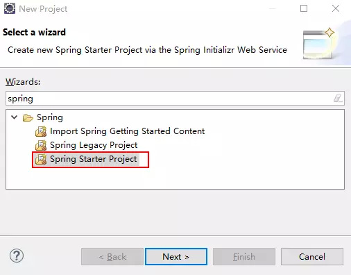 下面让我们使用它创建一个工程。首先点击熟悉的菜单File→New→Project,然后输入spring过滤一些无关的内容,再选用Spring Starter Project,点击Next,创建项目,如图1-2所示。