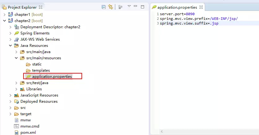 为了配置视图解析器(ViewResolver),将application.properties文件修改为如代码清单`-5所示。