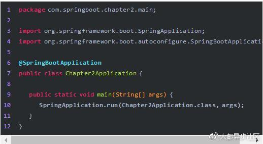 这样我们就完成了一个简单的控制器,并且让视图解析器找到视图的功能。从上面来看定义视图解析器,在Spring Boot中只需要通过配置文件定义视图解析器的前后缀即可,而无须任何代码,这是因为Spring Boot给了我们自定义配置项,它会读入这些自定义的配置项,为我们生成Spring MVC中的视图解析器。正如它所承诺的尽可能地配置Spring开发环境,然后再看到即将运行Chapter2Application.java文件,如代码清单1-8所示。