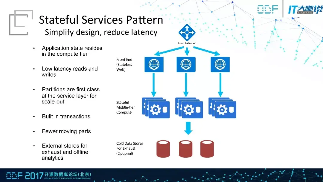 在实际的应用中其实大部分还是采用有状态模式,这种模式下依赖于有状态中间件,有状态中间件通过分区的方式解决高并发,在分区内使用传统方式保证数据一致性。这种情况下数据的传输过程相对较少,延迟得到了保障。
