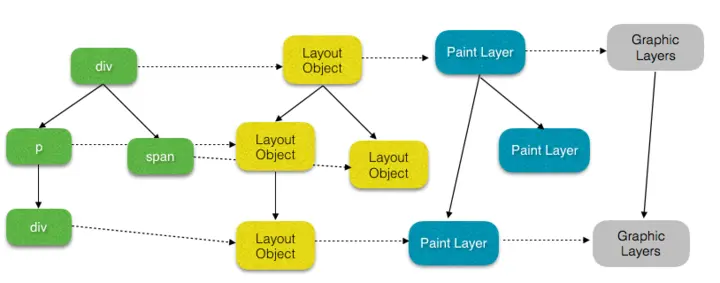 注:由于 Chrome 对 Blank 引擎某些实现的修改,某些我们之前熟知的类名有了变化,比如 RenderObject 变成了 LayoutObject,RenderLayer 变成了 PaintLayer。感兴趣的看以参阅 Slimming Paint。