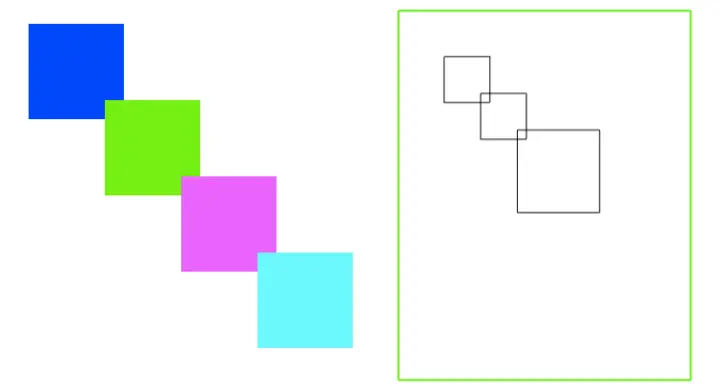 当我们 hover 绿色方块时,会给其设置 translateZ 属性,导致绿色方块也被提升为合成层,则剩下的两个被压缩到了一起,大小就缩小为包含这 2 个方块的矩形大小。