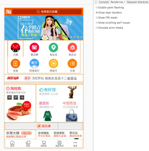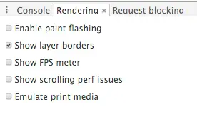 有了这个视图,你就能知道页面中到底有多少个合成层。如果你在对页面滚动或渐变效果的性能分析中发现 Composite 过程耗费了太多时间,那么你可以从这个视图里看到页面中有多少个渲染层,它们为何被创建,从而对合成层的数量进行优化。