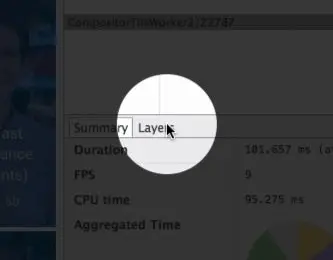 点击这个 Layers 选项卡,你会看到一个新的视图。在这个视图中,你可以对这一帧中的所有合成层进行扫描、缩放等操作,同时还能看到每个渲染层被创建的原因。