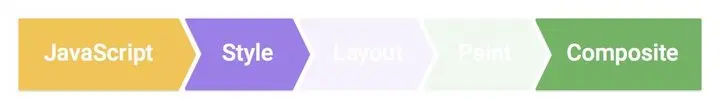 文章最开始,我们讲到了页面呈现出来所经历的渲染流水线,其实从性能方面考虑,最理想的渲染流水线是没有布局和绘制环节的,只需要做合成层的合并即可: