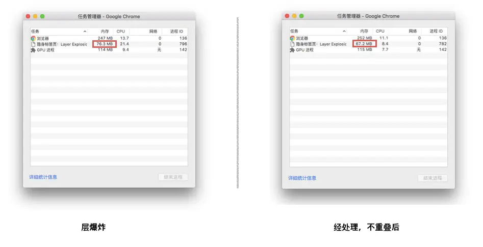 这种情况平时在我们的业务中还是很常见的,比如 slider + list 的结构,一旦满足了无法进行层压缩的情况,就很容易出现层爆炸的问题。