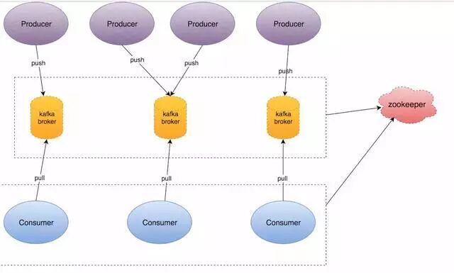 整个Kafka架构对应一个ZK集群,通过ZK管理集群配置,选举Leader,以及在consumer group发生变化时进行rebalance。