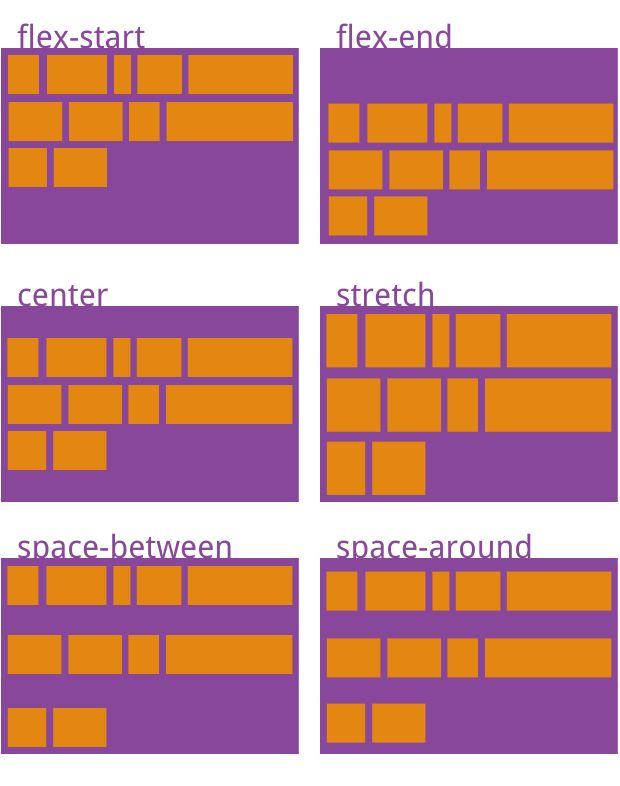 align-content: flex-start | flex-end | center | space-between | space-around | stretch;