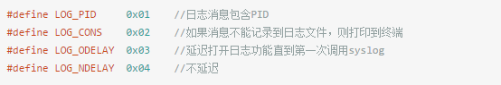 (2)logopt:对后续syslog调用的行为进行配置,它可取下列值的按位异或