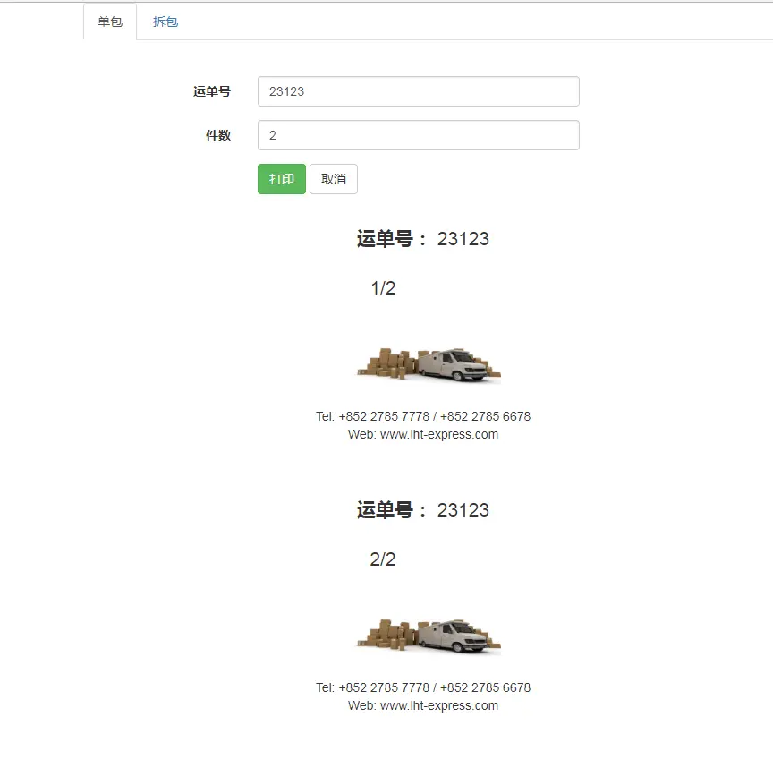 原始需求是需要打印运单号(也就是贴在快递上那个标签),如果拆分为五份,就需要同时打印五张。生成标签很容易,重点是找到分页符。下面会讲到,其实就是一个css样式(page-break-before:always)。